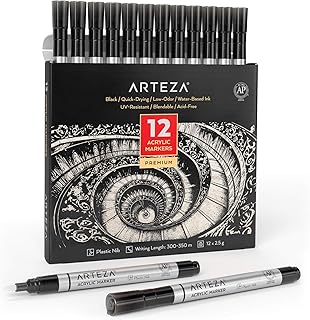 Achetez Marqueurs à peinture acrylique Arteza, lot de 20 marqueurs blancs et noirs, stylos à peinture acrylique longue durée et plume en plastique, pour métal, toile, roche, surfaces en céramique, verre, bois : Marqueurs : Amazon.fr Livraison gratuite possible dès 25€ Marqueurs à peinture acrylique Arteza, lot de 12 marqueurs noirs, stylos à peinture acrylique longue durée et plume en plastique, pour métal, toile, roche, surfaces en céramique, verre, bois , tissu Visiter la boutique ARTEZA 563 évaluations 2129€ (1,77€ / unité) & Retours GRATUITS Tous les prix incluent la TVA.