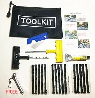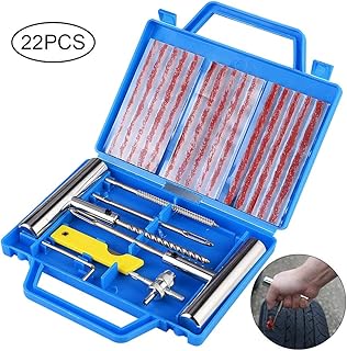 Le kit se compose de : - 3 outils nécessaires à l'insertion de ces mèches dans le pneumatique (tournevis aiguille, poinçon et cutter.), - et 5 mèches préencollées et autovulcanisantes pour réparer les pneus tubeless. Pour regonfler le pneu après la réparation, il est nécessaire d'utiliser soit un mini compresseur soit une pompe à pied double corps. Le kit de réparation de pneu en 7 pièces est composé de métal de haute qualité et à haute densité. Il est fabriqué selon un processus multiple, utilisant une technologie de galvanoplastie avancée pour rendre le produit brillant et lustré, tout en résistant à l'oxydation et à la durabilité.