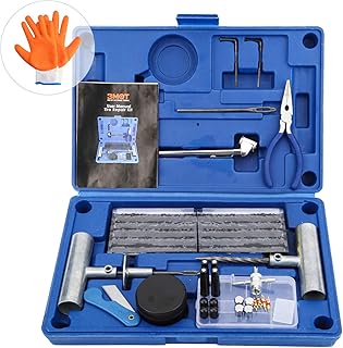 67pcs kit de réparation de pneu, kit de réparation de pneu universel Tool Set Tubeless de réparation de crevaison kit de réparation de pneu Crevaison avec étui bleu pour voiture Van moto vélo